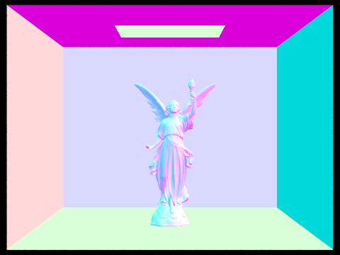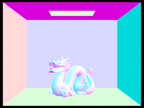 Implementing a Bounding Volume Hierarchy (BVH) reduces the rendering from linear time to log time. This allows scenes with hundreds of thousands of primitives to be rendered in a reasonable amount of time. Rendering CBlucy.dae, which has 133796 primitives, only took 20.5226 seconds. And, rendering dragon.dae, which has 105120 primitives, took 19.5581 seconds.