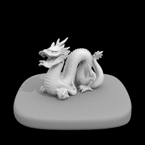 Comparing the 4 dragon images below. All of the images used 64 camera rays per pixel. The first dragon used 1 sample per area light, the second dragon used 8 samples, the third used 32 samples, and the fourth used 64 samples. The first image does have some graininess to it. The surface of the model looks like it has a rough, rocky texture. The lighted areas and shadow areas of the image are not well contrasted. Shadow borders are fuzzy. In the second image, the surface appears smoother than before, but there is still some graininess to the image. The edges of the shadow appear to be better defined, but there is still moderately low contrast between light and shadow. In the third image, the surface of the model looks smooth, now without tiny speckles. The contrast between lighted surfaces and shadows is much more prevalent than before, and borders are pretty well defined. The fourth images looks very similar to the third image. I can only perceive that this image has a very-very-slightly more contrast between lights and darks than the previous image.
